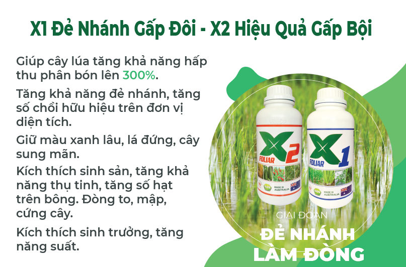 Cẩm Nang Cây Lúa: X1 Đẻ Nhánh Gấp Đôi – X2 Hiệu Quả Gấp Bội